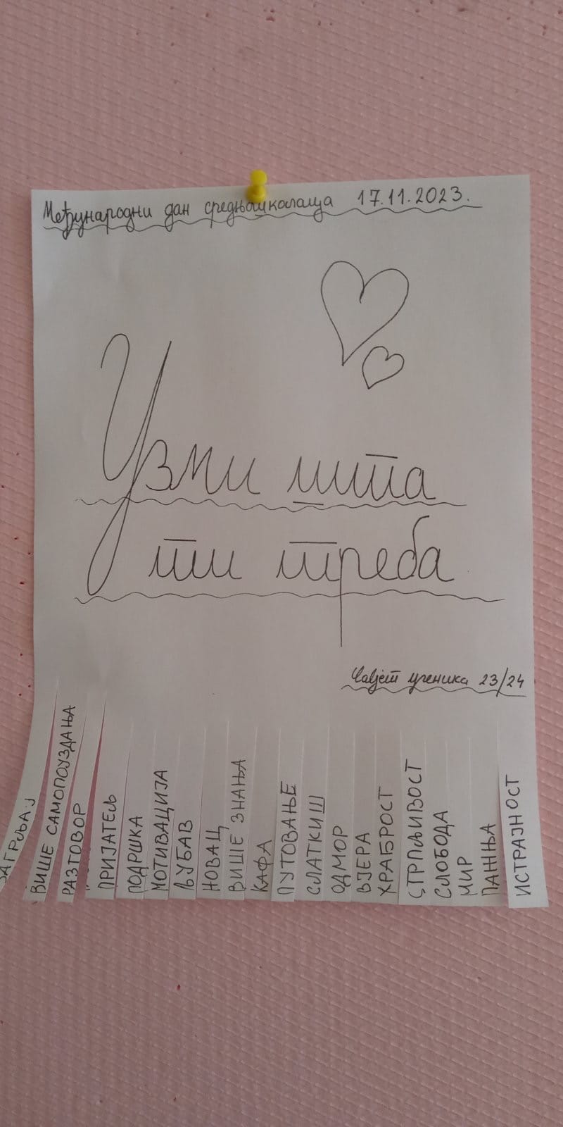 Низ активности у обиљежавању Међународног дана средњошколаца чини и посјета Народном позоришту Републике Српске, проведена у организацији Актива српског језика наше школе.
